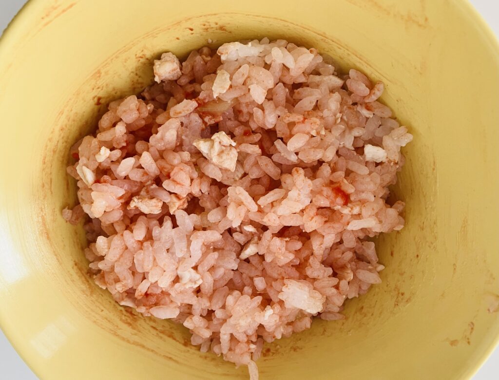 - 手順5ご飯に3とトマトペーストを混ぜてチキンライスに