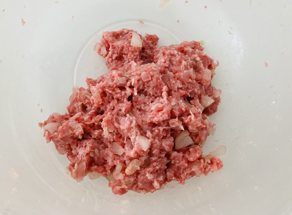 - 手順10残りのひき肉に1のレンチンした玉ねぎを加えて混ぜ、ハンバーグのタネを作る