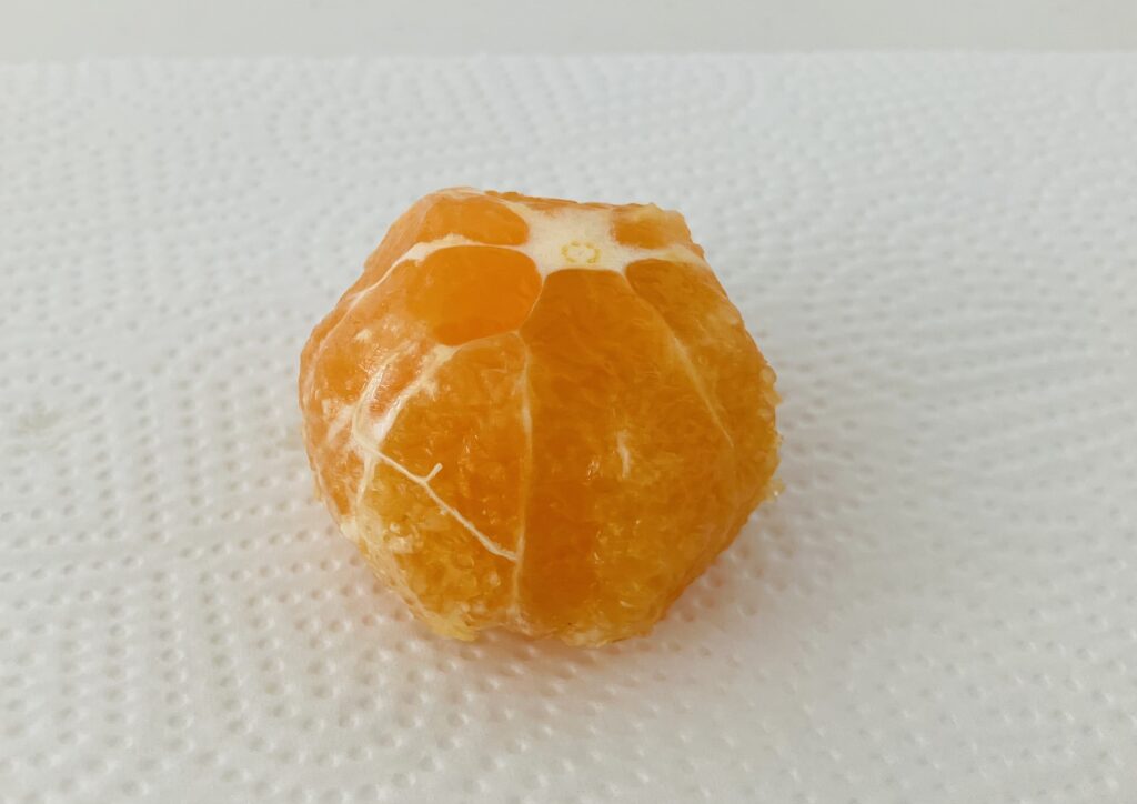 🍊オレンジは薄皮が食べづらいので、写真のように包丁で皮ごとむいて取って輪切りにすると安心です。