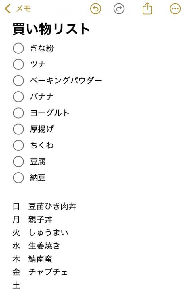 ちなみにリストの下には、その週の献立メモも一緒に書いています。