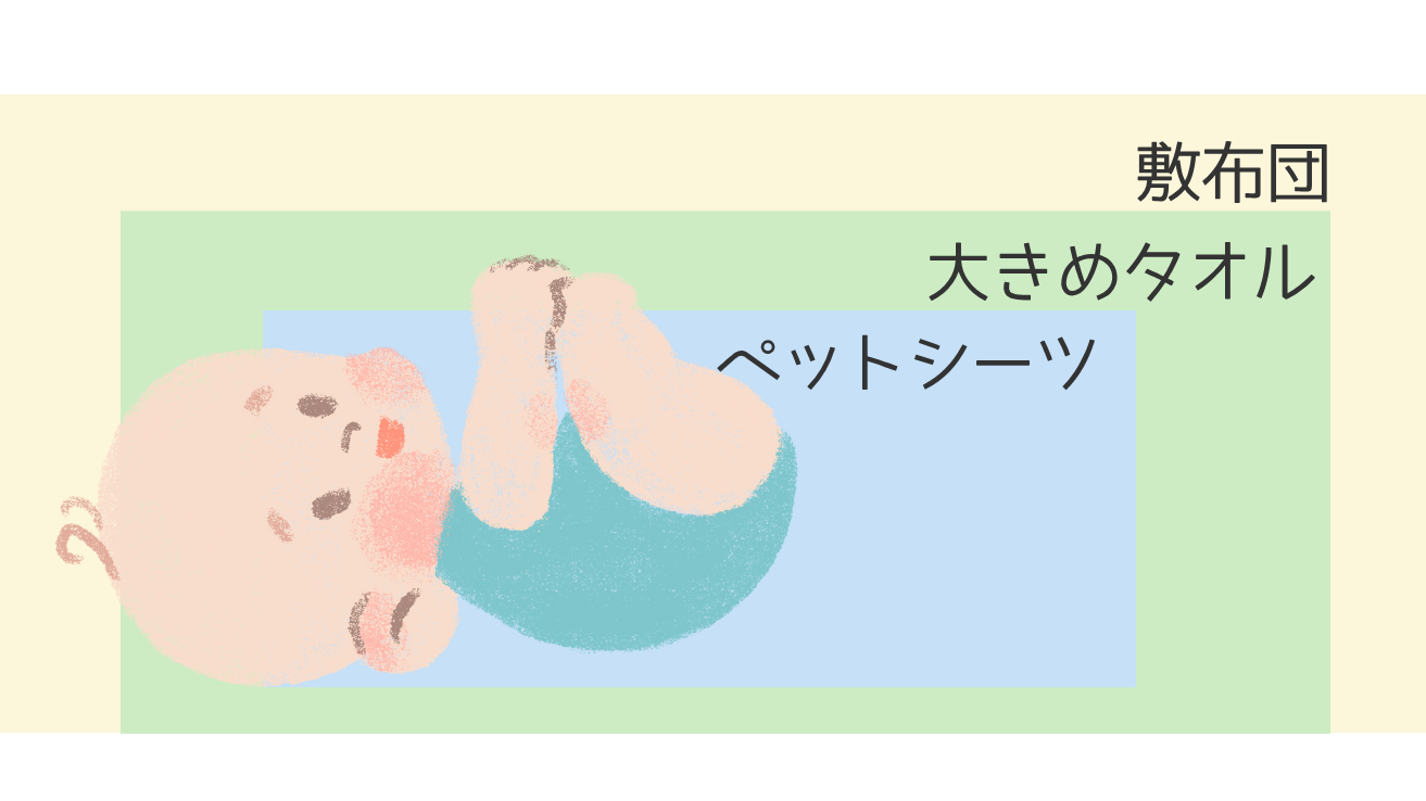 布団の上に大きめタオルを普段は敷いておいて、おむつ替えの時はペットシーツを敷くとタオルを洗う回数も減らせます。